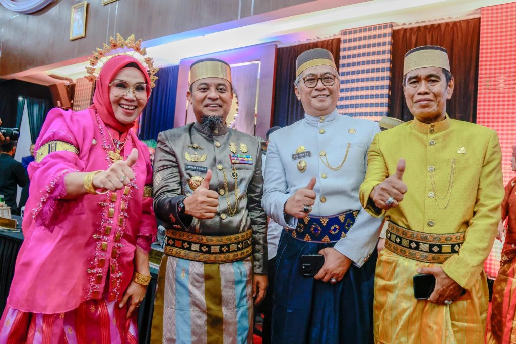 Barru — Pemerintah Kabupaten Barru menunjukkan kekompakan saat menghadiri peringatan Hari Jadi Sulawesi Selatan ke-356 di Ruang Pola Kantor Gubernur Sulsel, Minggu (19/10/2025). Bupati Barru, Andi Ina Kartika Sari, tampil bersama Wakil Bupati, Dr. Ir. Abustan A. Bintang, dan Ketua DPRD Barru, Drs. H. Syamsuddin Muhiddin, mengenakan busana adat sebagai bentuk penghormatan terhadap warisan budaya Sulsel.