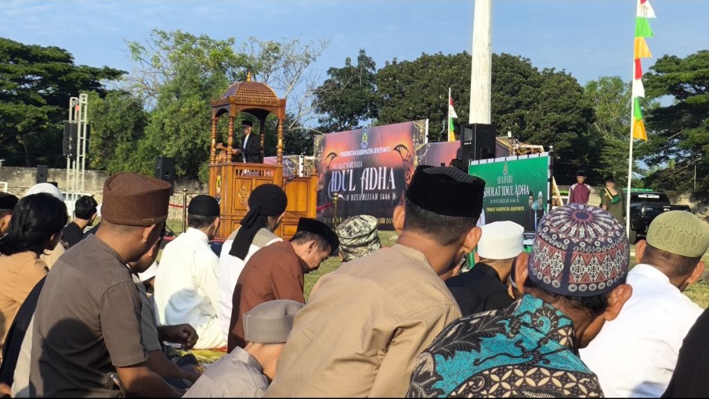 Jeneponto – Perayaan hari raya Idul Adha 1446 Hijrah telah dilaksanakan secara bersama-sama oleh sebagian masyarakat Jeneponto di Stadion Turatea. H., Paris Yasir S.E.,M.M., selaku Bupati Jeneponto turut hadir pada pelaksanaan ditempat tersebut untuk memberikan sambutan, pada sambutannya itu ia menyoroti bagaimana pengelolaan sumpah menjadi prioritas utama.