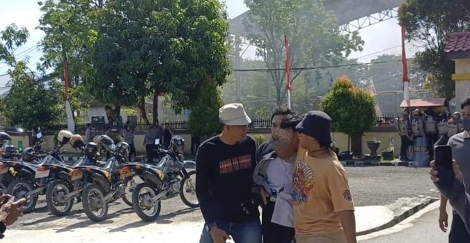 Foto Siswa SMA berinisial AR di Kabupaten Pangkep, ditangkap saat ikut unjuk rasa