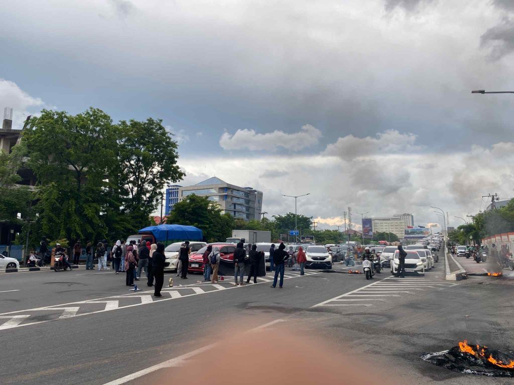 Demonstrasi mahasiswa berlangsung di badan jalan dan menyebabkan kemacetan di ruas Pettarani, khususnya pada jalur yang mengarah ke Jalan Sultan Alauddin. Arus kendaraan tersendat karena massa aksi memblokir sebagian badan jalan sambil bergantian menyampaikan orasi.