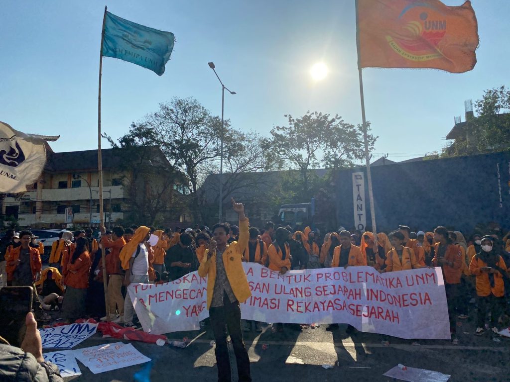 Presiden BEM UNM, Syamri, menyatakan bahwa mahasiswa tetap terbuka pada diskusi sejarah, termasuk G30S dan pelanggaran HAM 1998. Namun, ia mengecam forum-forum yang berjalan secara tertutup dan tidak melibatkan mahasiswa. “Kami tidak pernah diajak bicara. Mereka sudah menutup pendaftaran forum sebelum mahasiswa sempat tahu,” ujar Syambri dalam orasinya.